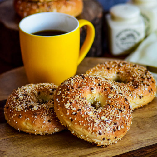 Bagels are perfect breakfast, we do the original recipe, boiled and baked to give that perfect chewy texture in every bite. Its not to be confused with a burger bun