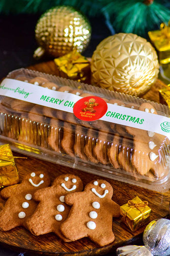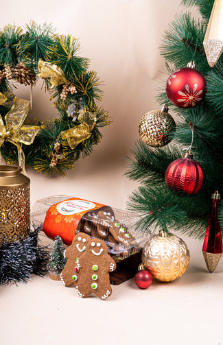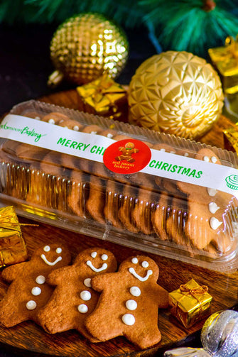 Gingerbread cookies, shaped like mini gingermen, packed in Dozens. Loved by Children and adults alike. The texture is soft and chewy, with a fresh ginger and cinnamon smell.